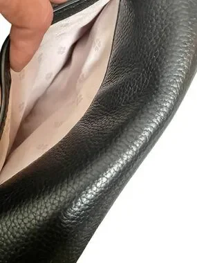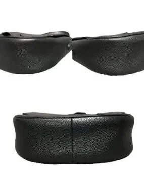 Sleek pebbled leather crossbody with a curved saddle silhouette. Front flap features a subtle knot strap detail. Adjustable shoulder strap for hands-free wear. Gold-tone logo hardware adds a polished touch.