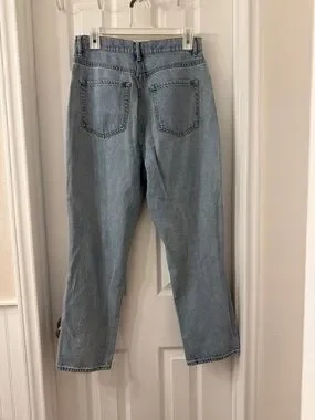 Classic light wash denim in a straight leg silhouette. Versatile everyday style that pairs with anything. Pre loved in good condition, size 29. Button closure.