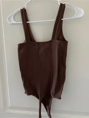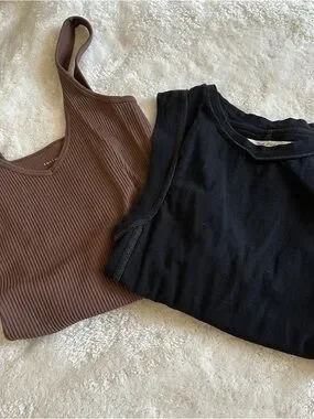 ca also list separately if interested. brown ribbed bodysuit, black muscle tank. both have no flaws and are best for xs