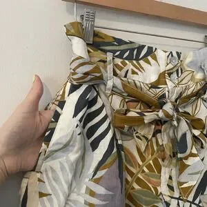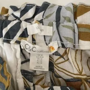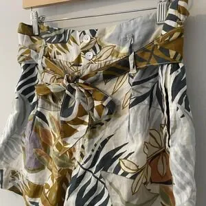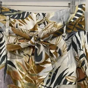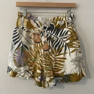 Cynthia Rowley 100% Linen Paperbag Floral Leaf Shorts Sz M Resort Tropical Boho