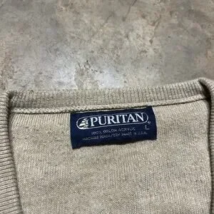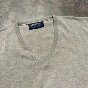 Vintage 80s Puritan Beige V-Neck Acrylic Sweater