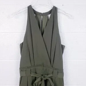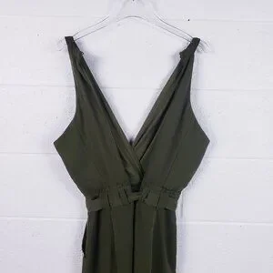 NWT Lulus In the City Green Olive Surplice Sleeveless Jumpsuit Pocket Size Small