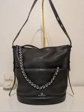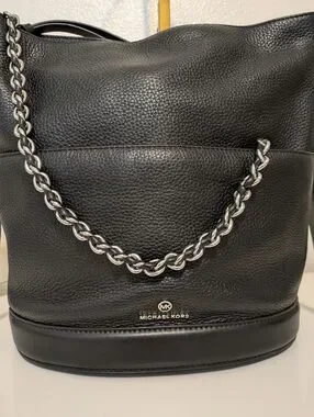 Michael Kors Black Chain Leather Bucket Bag EUC