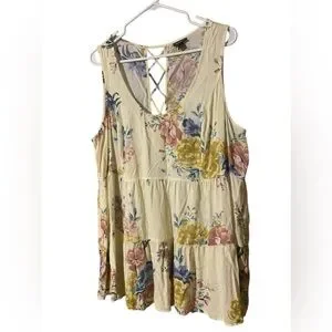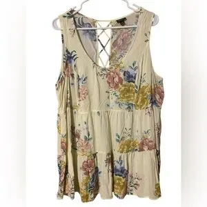 Torrid Floral Tiered Top Womens 2X Yellow Sleeveless Challis Fairy Cottage Comfy
