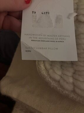 The lumbar pillow features a handwoven Peruvian texture for layered comfort. Soft cream color complements neutral and modern decor. High-quality weave adds subtle visual interest. Durable construction designed for everyday use.
