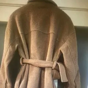 Topshop Wool Blend Belted Shacket Jacket Brown Brushed Coat US 8