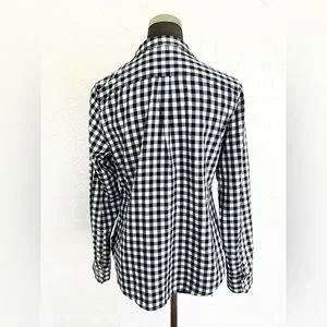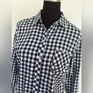 Untuckit Cora Tailored Navy Plaid Cotton Button Down Shirt Womens Size 8