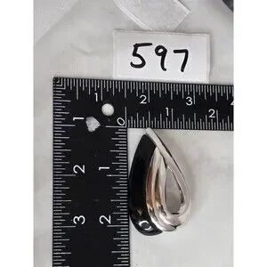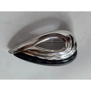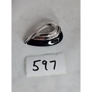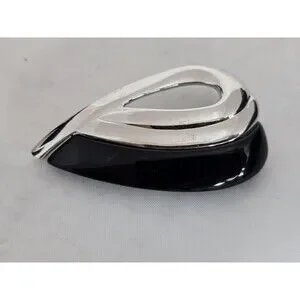 Napier Silver Tone Black Enamel Teardrop Modernist Brooch Sleek Minimalist #597