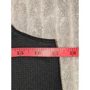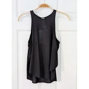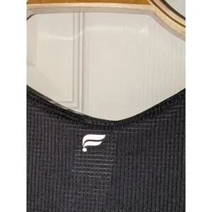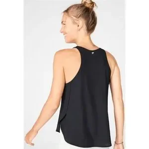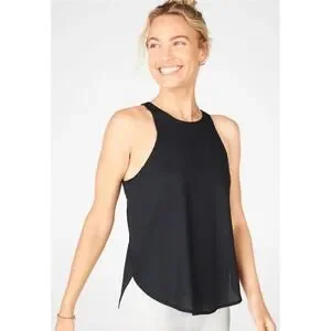 Keywords: Fabletics tank top, cropped tank, swing tank, black tank top, athletic tank, workout top, yoga tank, side slit tank, shirttail hem, relaxed fit, dobby check mesh, breathable tank, activewear, exercise top, gym tank