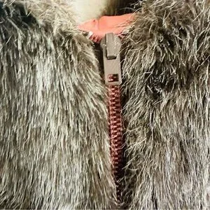 Vintage Brown Real Fur Hooded Zip Jacket Size Medium Mobwife Retro Style