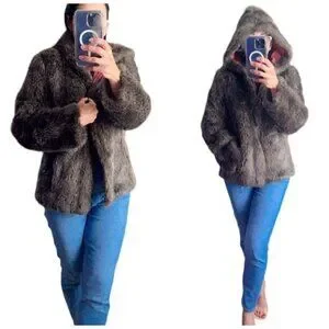 “Step back in time with this vintage brown real fur hooded zip jacket, perfect for a touch of retro mobwife style. Crafted from luxurious real fur, this medium-sized jacket offers both warmth and timeless elegance. The hood adds a chic, practical touch, while the zip closure provides easy wearability. Whether you’re channeling old Hollywood glamour or looking to make a bold fashion statement, this jacket is a must-have for any vintage lover’s wardrobe.”