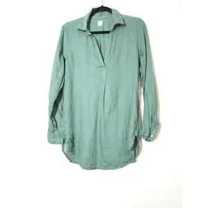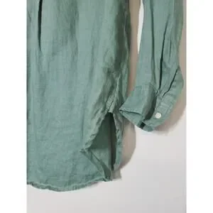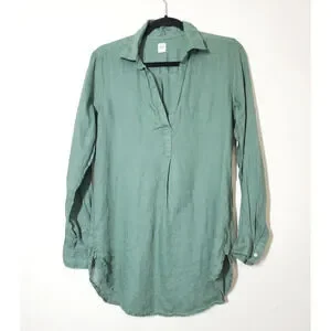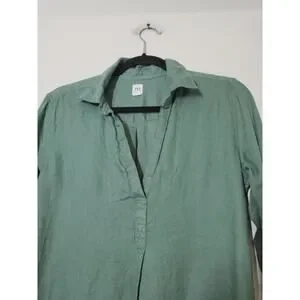 Gap Womens XS Boyfriend Tunic Top 100% Linen Popover Green Long Sleeve