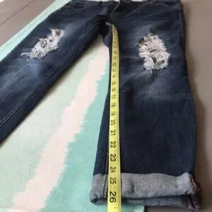 Angel Kiss Distressed Ankle Jeans Cuffed Hem Stretch Denim 9
