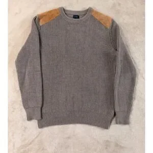 J.Crew Woodsman Ribbed Knit Sweater Men M Leather Shoulder Patches Brown EUC in excellent condition
