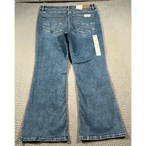 The BKE Buckle Payton Jeans for women in size 32x30 feature a mid-rise, bootcut style with a universal fit. Made from denim fabric with stretch for comfort, these jeans have a classic 5-pocket design and a zip closure. The solid blue color and logo accents add a stylish touch, perfect for any season. Easy to care for with machine washable instructions, these jeans are a versatile and timeless addition to any wardrobe.