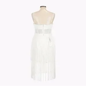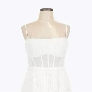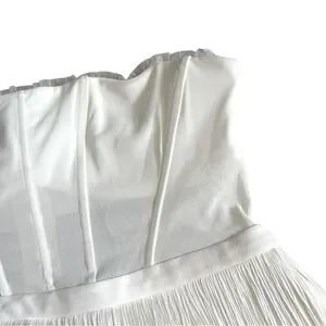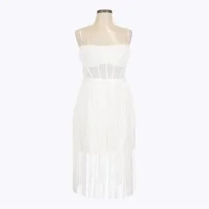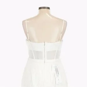 BCBGMaxAzria White Fringe Corset Midi Sheath Dress 14 Off-White Cocktail NWT