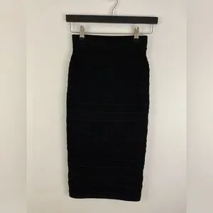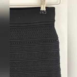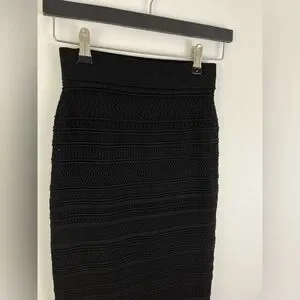 BABATON Bodycon tube skirt. Black. Bodycon pencil skirt. HIgh waisted skirt with a pencil fit. Pointelle knit. Knit with a crepe yarn that smooths and contours your shape. 68% viscose, 30%nylon, 2% elastane. Retailed for $99