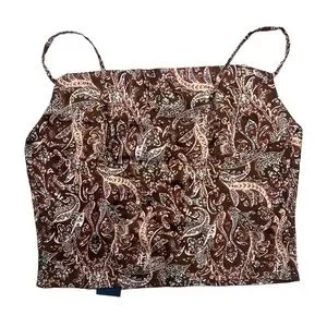 Hollister Sleeveless Tan Pattern Cropped Silk Top