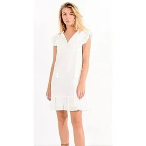 Molly Bracken Womens Flutter Sleeve Mini Dress White Size Medium