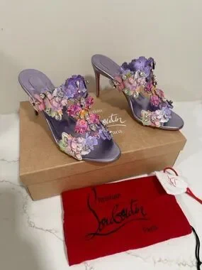 Absolutely stunning! Brand new limited edition bloom sandals with hand embellished crystals and detailed floral appliqués. In box with duster. They run slightly small. The heel height is 85, they run slightly small. More pictures and video coming today!