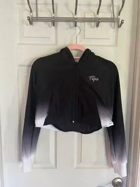 Flips Gymnastics Team Rhinestone Embellished Ombre Cropped Hoodie Adult Small