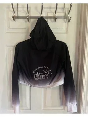 Flips Gymnastics Team Rhinestone Embellished Ombre Cropped Hoodie Warm Up Jacket