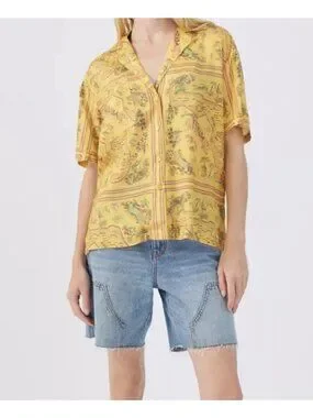 Urban Outfitters UO Gardenia Map Florida Souvenir Button Down Top Shirt Small