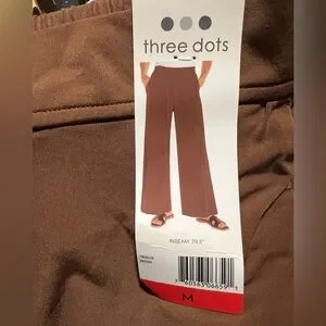 NWT Three Dots Women's Pull-On wide leg brown Pant