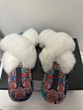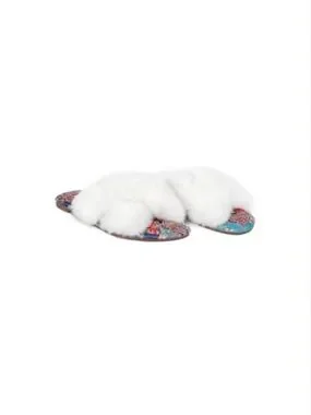 JOHNNY WAS INDIX SLIPPERS IN MULTI white Faux Fur Crossband Slide Slipper, Women