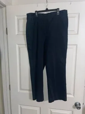 Black cotton blend pants, flat front waist band elastic back waistband