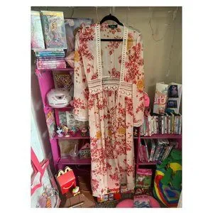 LULUS CREAM FLORAL PRINT CHIFFON DUSTER SIZE SMALL‎