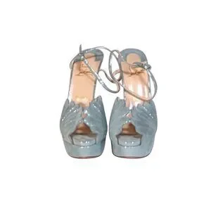 Christian Louboutin - Aqua Blue Metallic Platform "Botticella Alta" Strappy Pum