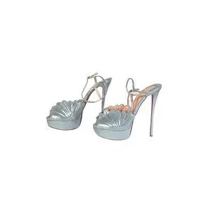 Put your best foot forward in these Christian Louboutin "Botticella Alta" strappy pumps. The metallic platform provides a touch of glamour, while the sea shell stitched design adds a sexy and unique touch. Perfect for making a statement and adding some fun to your outfit.