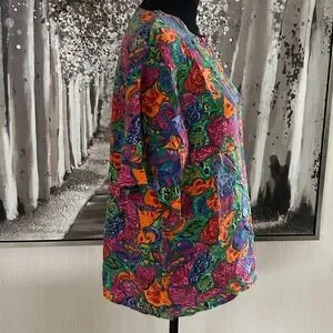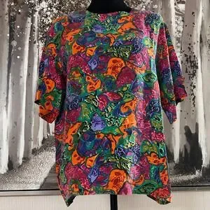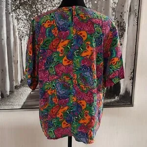 Marguerite LI Womens Multicolor 100% Silk Short Sleeve Crew Neck Blouse - Large
