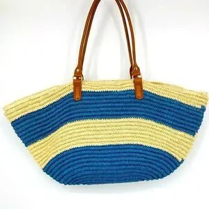 NWT Tommy Bahama Handwoven Crochet Striped Large Tote Bag