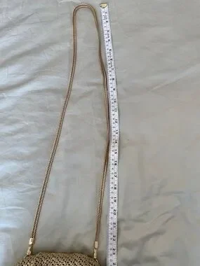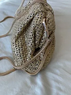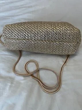 Stunning Metallic Gold Woven Shoulder Clutch with Chain Strap