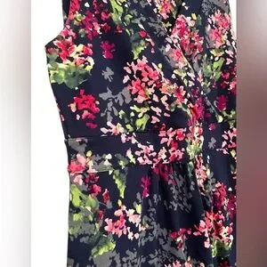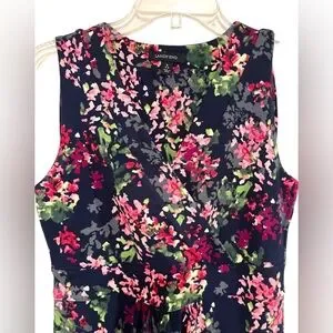 Land’s End Pima Cotton Floral V Neck Sleeveless Multicolor Maxi Dress Size L Condition: Pre-owned in very good condition. Side slits on both sides that come up to about mid-calf Material: 58% Pima Cotton / 39% Rayon / 3% Spandex