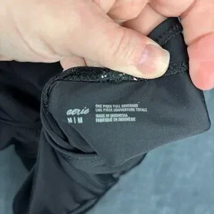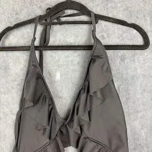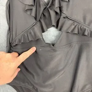 Aerie Black Ruffled, Cut-out One Piece Swimsuit Sz Medium ** see description