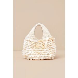 NWT Lulus Alaiza Cream Beaded Shell Mini Handbag w/Chain