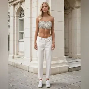Women's Ruffle Strapless Bandeau Bikini Top - Shade & Shore White Animal Print In Size Medium. Top only. Preowned but excellent condition.