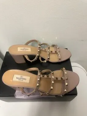 Valentino Garavani Rockstud Slide Blush Pink Rockstud Triple-Strap Flat Sandals