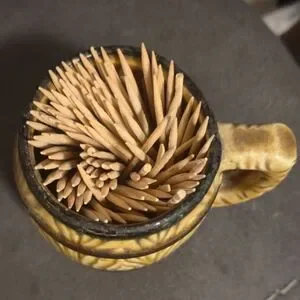 Japan Vintage Ceramic Barrel Toothpick Holder MCM Faux Wood Grain Brown Tan Mini