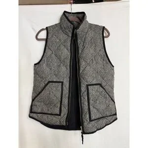 J.Crew Herringbone Excursion Puffer Vest Black White Down Fill Womens Small S