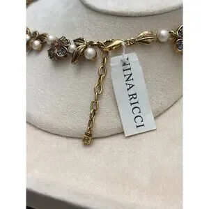Nina Ricci Gold Plated Necklace with Pearls, Enamel & Crystals - 16-18"