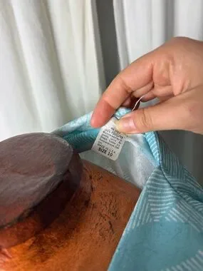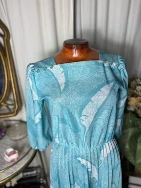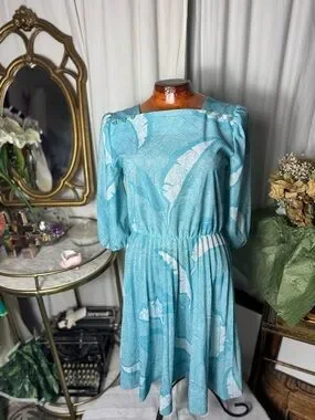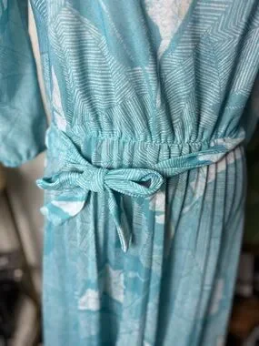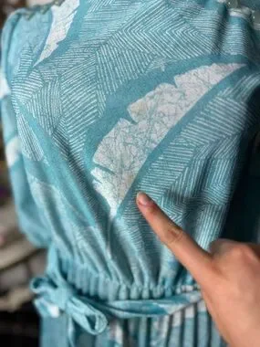 Elegant blue patterned midi dress with a flattering gathered waist. Lightweight fabric and three-quarter sleeves for comfortable all-day wear. Versatile style perfect for daytime events or casual outings. Features a soft blue and white print that adds a fresh, feminine touch.