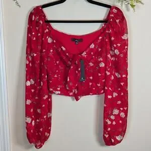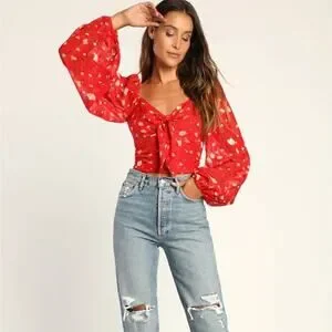 Lulu's red floral tie front long sleeve top