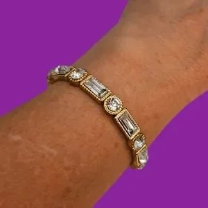 3/$20 Paparazzi Goldtone Crystal Art Deco Stretch Bracelet