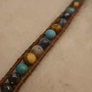 Bohemian Multi-Color Gemstone Beaded Leather Adjustable Wrap Bracelet