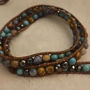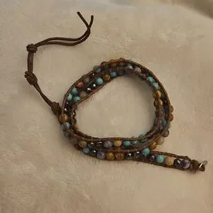Embrace a bohemian vibe with this stunning multi-color beaded wrap bracelet. Featuring a mix of earthy tones and vibrant beads, this accessory adds a touch of elegance to any outfit.