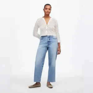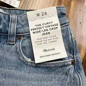 Madewell The Curvy Perfect Vintage Wide-Leg Crop Jean in Hallstead Wash Size 24. New with tag. The cut: designed for an hourglass shape (see: narrower waist with a contoured band, a longer rise and a little extra room at the hips and thighs), these cropped Perfect Vintage jeans have wide legs and the holds-you-in feel of our Magic Pockets™ in front. In Hallstead, a light indigo wash with lived-in character.